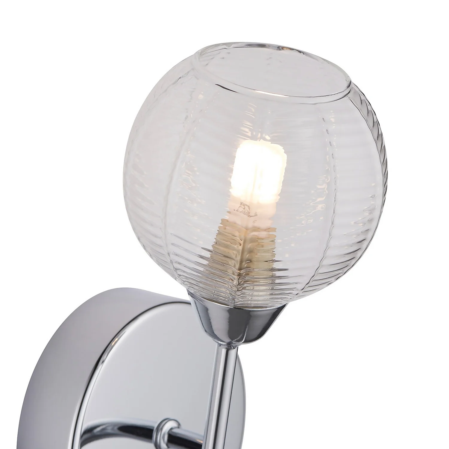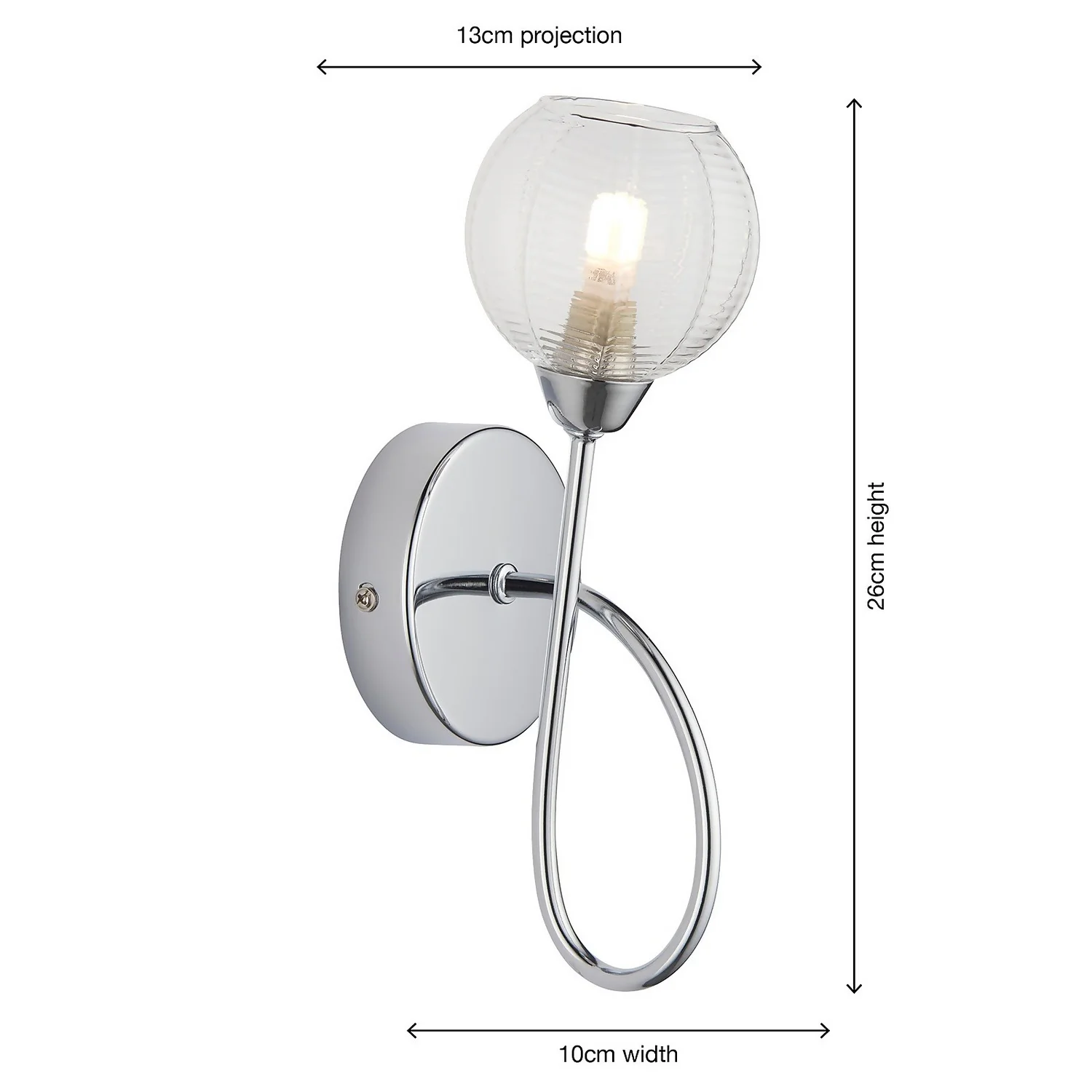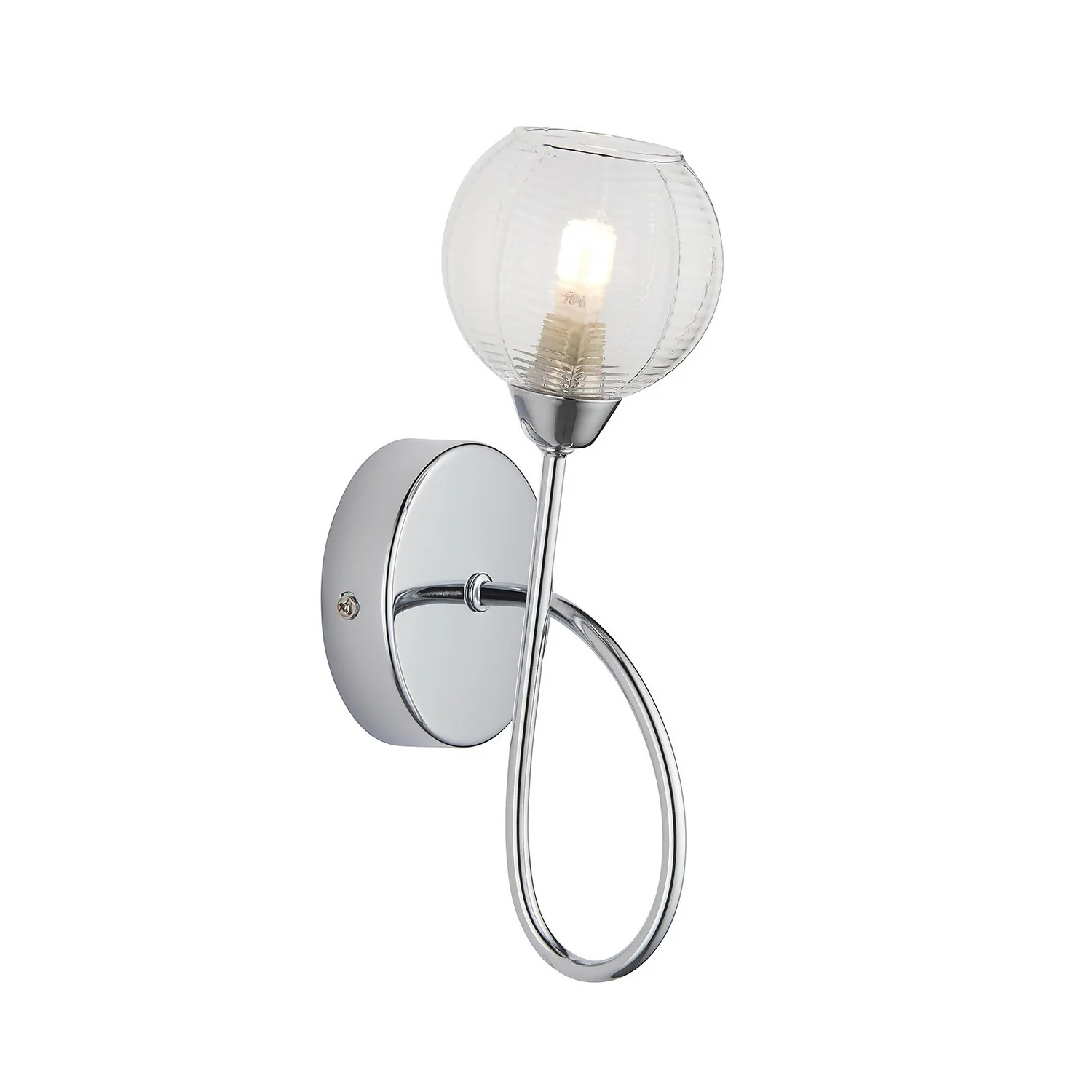 A lovely modern scluptural wall light. Chrome plated with complementary clear ribbed glass which creates a beautiful light effect when lit.